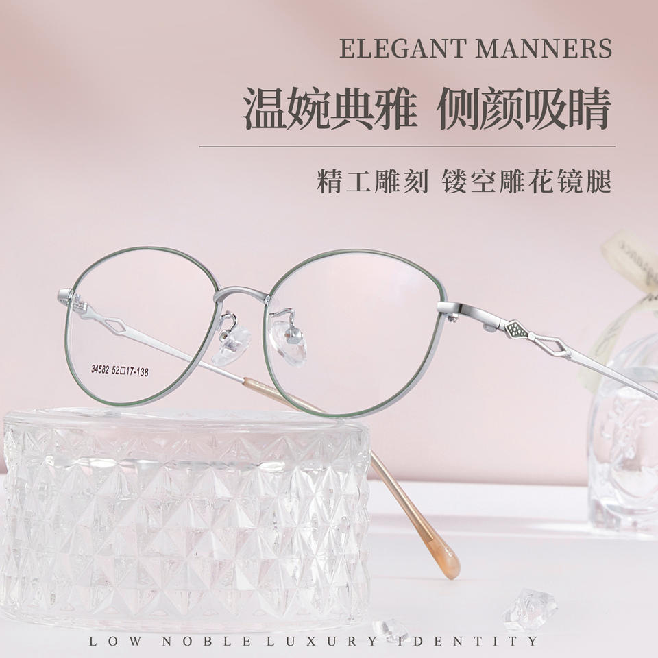 กรอบแว่นตาโลหะผสมทรงกลมสำหรับผู้หญิง รุ่น 34582 แฟชั่นอินเทรนด์ ชุบสีสองเฉด