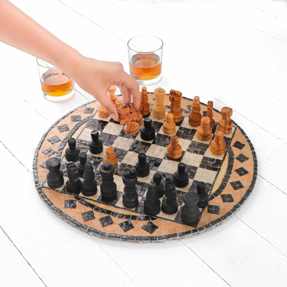 ชุดหมากรุกหินอ่อนสุดหรู ทำด้วยมือ เป็นมิตรกับสิ่งแวดล้อม ทนทาน ตกแต่งอย่างมีศิลปะ