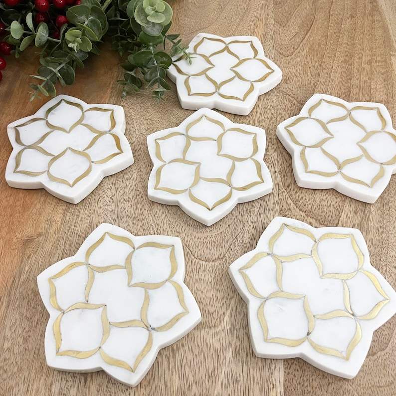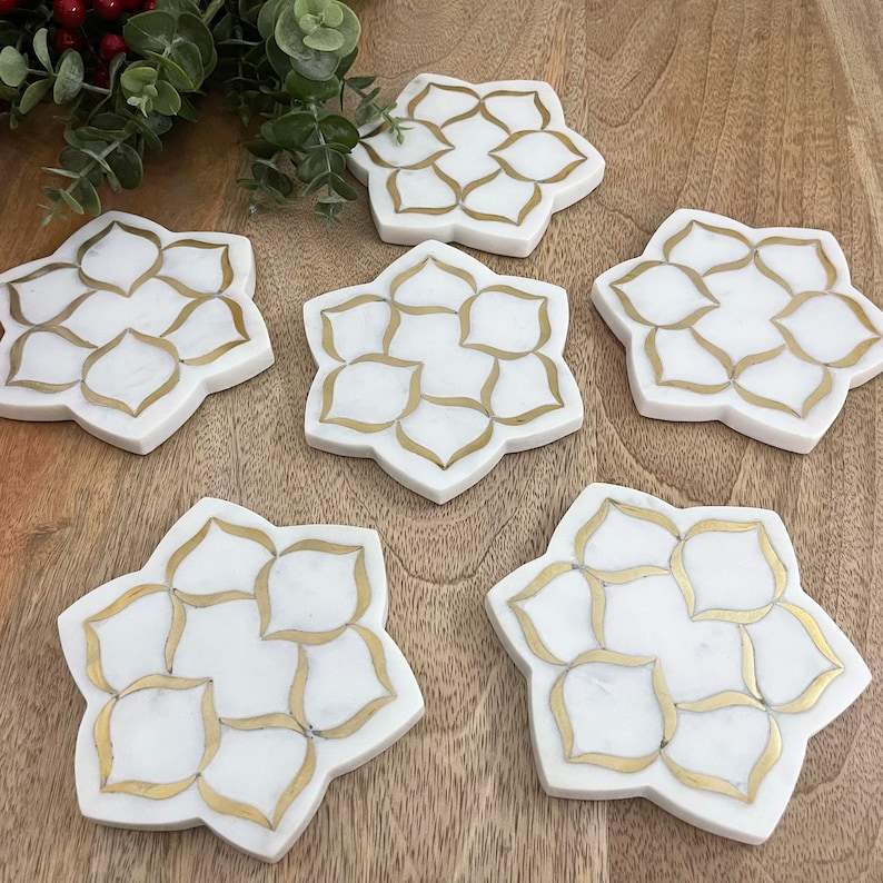 ชุดถาดรองแก้วหินหินอ่อนหรูหราขอบทองแผ่นรองเครื่องดื่มทรงกลมหรูหราสำหรับการรับประทานอาหารที่ทันสมัยและการตกแต่งโต๊ะแบบพรีเมี่ยม