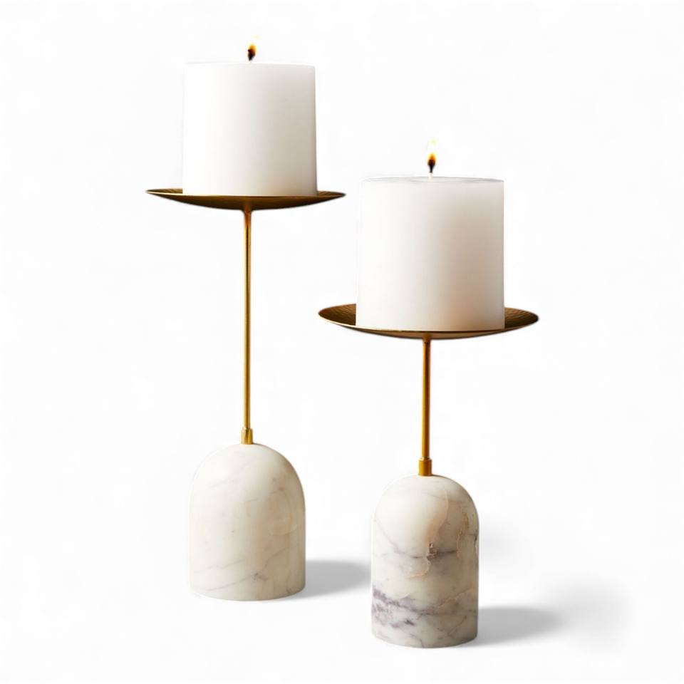 ชุดเชิงเทียนหินอ่อนและทองเหลือง ดีไซน์หรูหรา ดูเรียบง่าย พร้อมก้านเรียวบาง เหมาะสำหรับตกแต่งภายใน