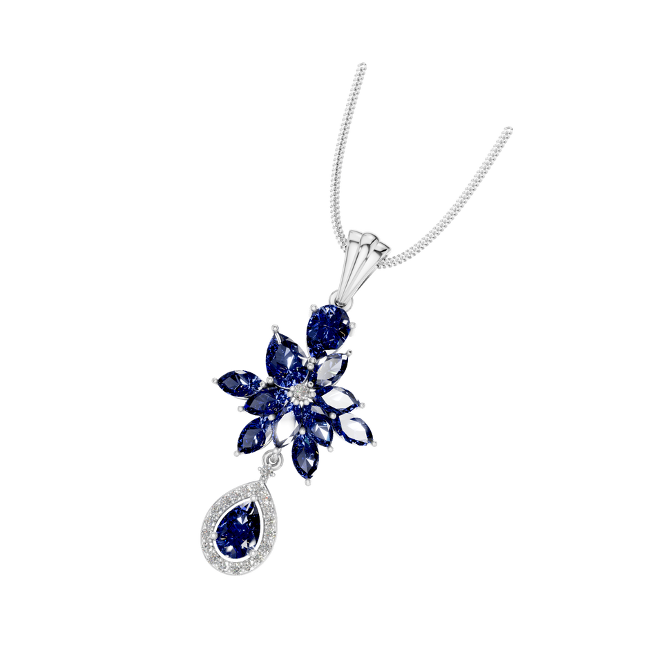 Style:Floral Pendant with Marquise & Pear-Shaped Sapphire & Diamond