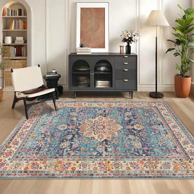 พรมปูพื้นลายเหรียญหรูหรา รูปทรงสี่เหลี่ยมผืนผ้า วัสดุเลียนแบบขนแคชเมียร์ กันลื่น ตกแต่งบ้าน สไตล์เปอร์เซีย สำหรับห้องนั่งเล่นและห้องนอน