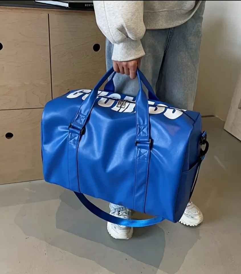 กระเป๋าหนังแบบดัฟเฟิลสำหรับเล่นกีฬาทำจากหนังแท้มีโลโก้พิมพ์ลายเป็นมิตรต่อสิ่งแวดล้อมวัสดุทนทาน