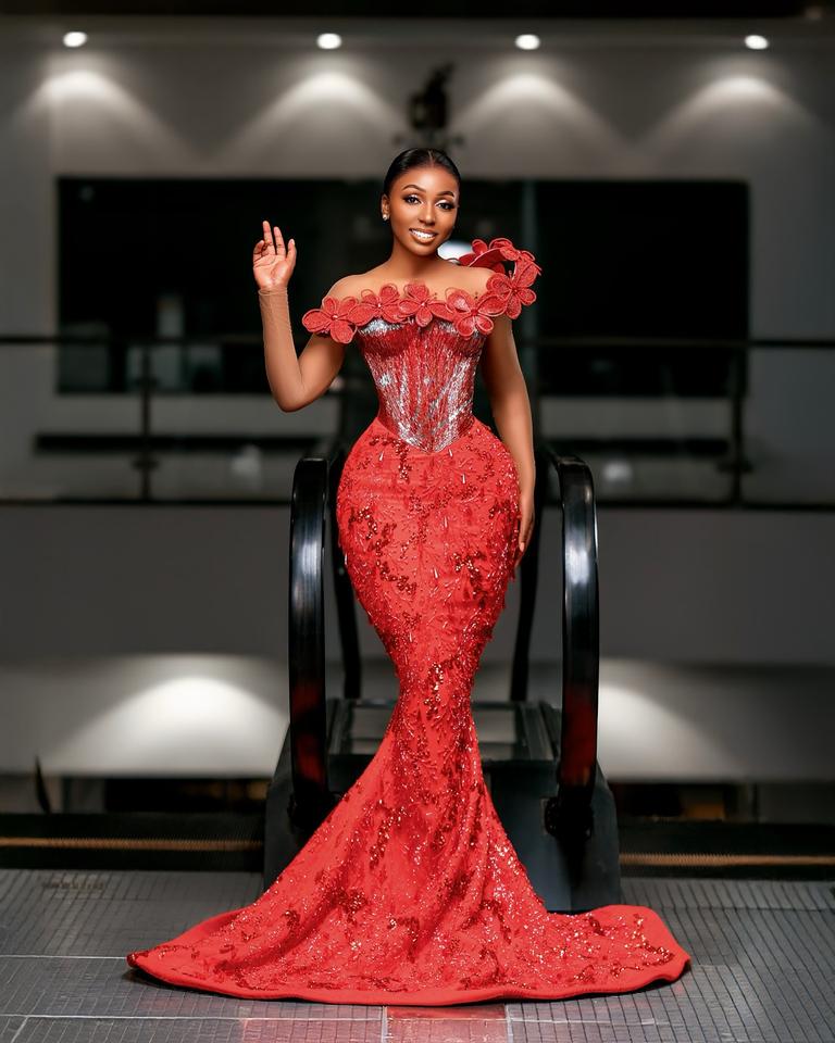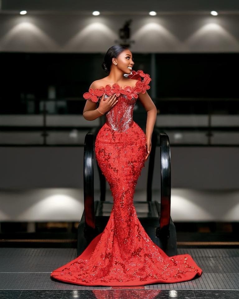 ชุดราตรียาวเข้ารูปทรงนางเงือกสุดหรูชุดราตรีสไตล์แอฟริกันตกแต่งด้วยคริสตัลขอบคอเสื้อทรงตรงจากธรรมชาติ
