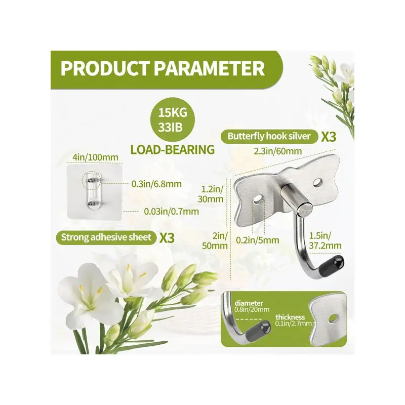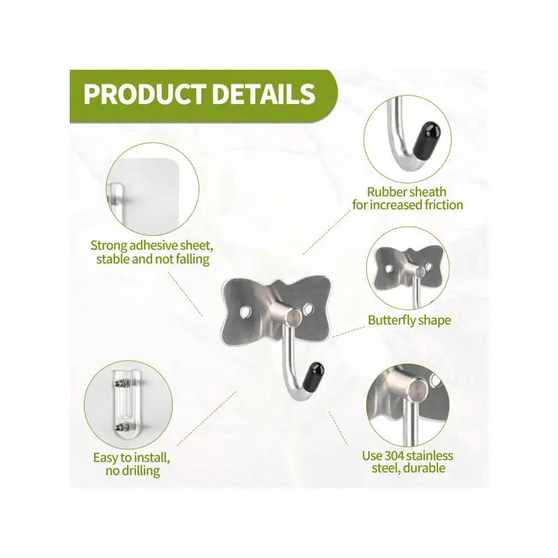 ตะขอแขวนผีเสื้อโลหะดีไซน์หรูสำหรับห้องน้ำหรือตู้เสื้อผ้า - อุปกรณ์จัดระเบียบแบบติดประตูอเนกประสงค์รักษ์โลกสำหรับตู้เสื้อผ้า