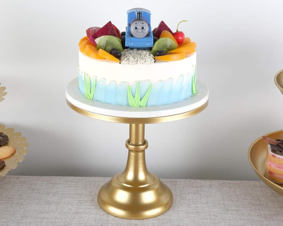แท่นวางเค้กโลหะสำหรับตกแต่งที่หรูหราสำหรับวันเกิดและกิจกรรมการออกแบบที่ทนทานพร้อมฐานกันลื่นเพื่อความมั่นคงและทำความสะอาดง่าย