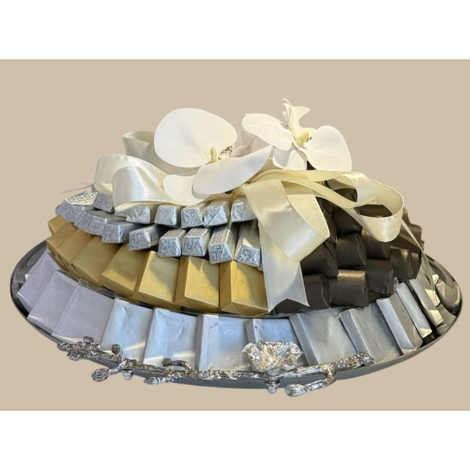 ถาดขนมช็อคโกแลตโลหะหรูหราพร้อมดีไซน์หรูหราโบราณเงางามของขวัญขึ้นบ้านใหม่ที่มีคุณภาพ
