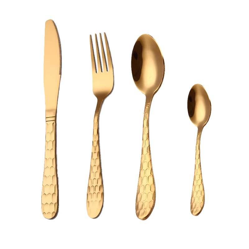 ชุดเครื่องใช้บนโต๊ะอาหารโลหะหรูหราพร้อมด้ามจับที่น่าทึ่งทำจากทองสำหรับบ้านและงานแต่งงานบนโต๊ะชุดเครื่องใช้บนโต๊ะอาหาร