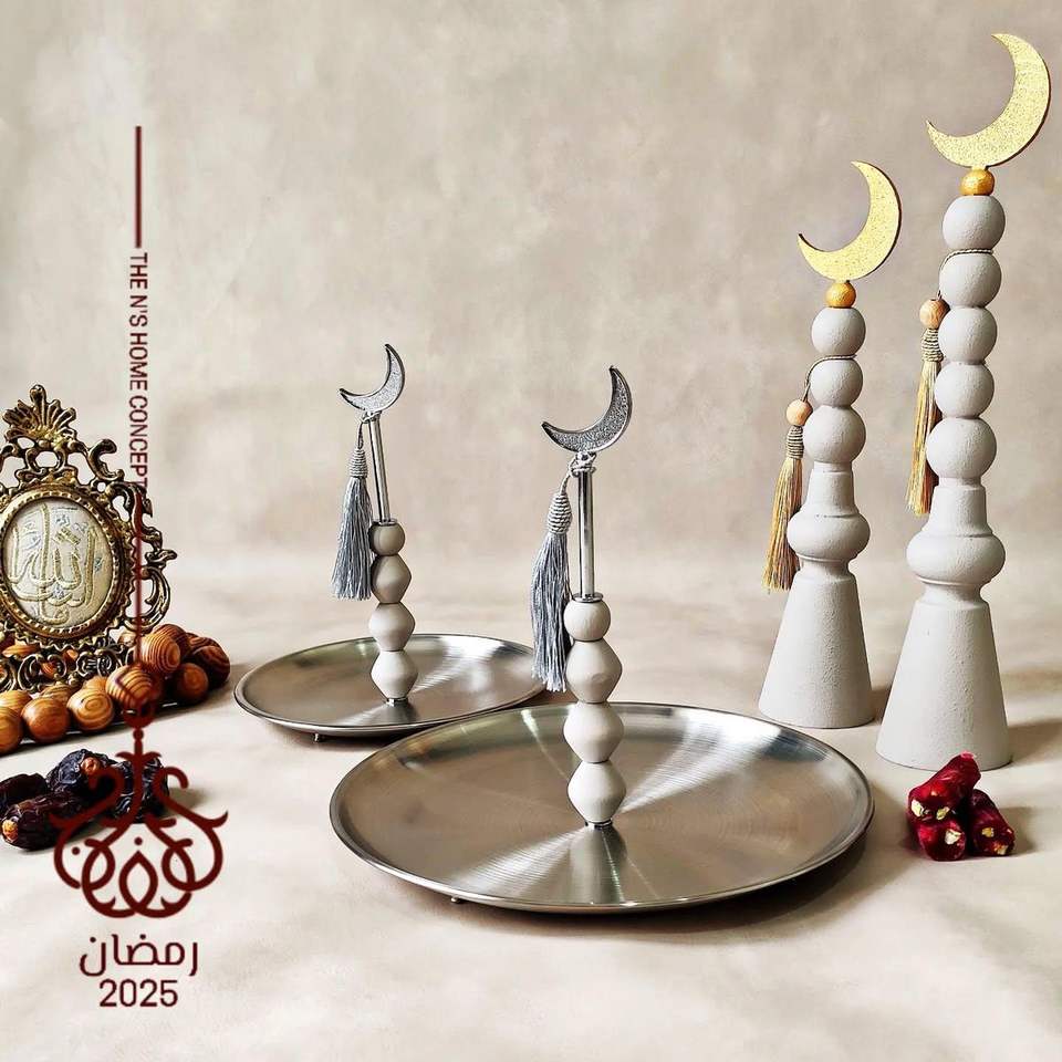 ถาดเสิร์ฟช็อกโกแลตพร้อมสัญลักษณ์อิสลามสำหรับวันเดือนรอมฎอนและของตกแต่งโต๊ะ