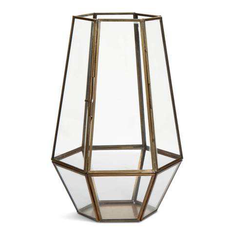 Elegant Metal & Glass Tabletop Jewelry Box Hexagonal Shape With Shiny Golden Powder Coating Finishing Premium Quality
