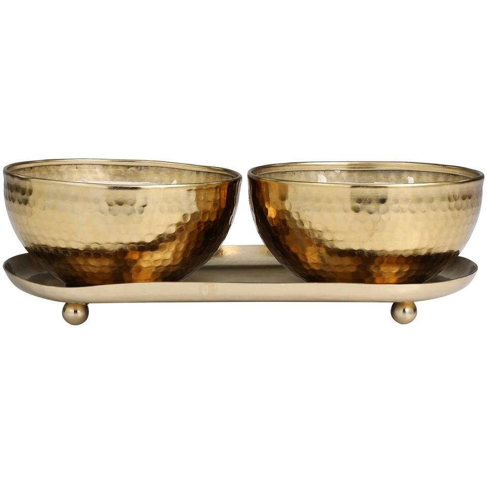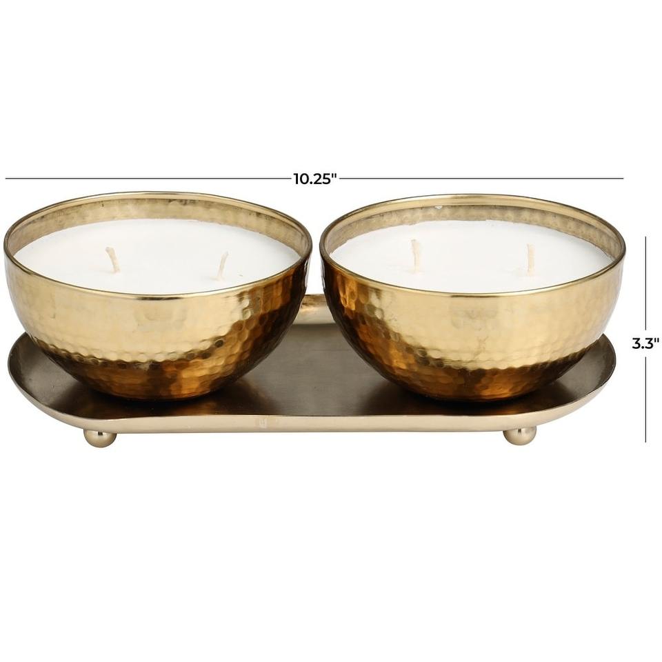 ชุดของขวัญอโรมาเธอราพีทรงถ้วยคู่พร้อมถาดใส่เทียนหอมพร้อมถาดใส่ในบ้านเป็นชุดของขวัญสุดหรูทำจากโลหะทุบสีทองสี่ชั้น