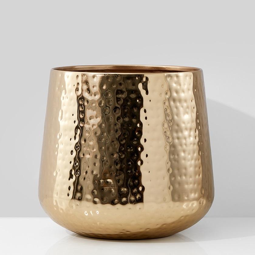 แจกันปลูกต้นไม้ตกแต่งบ้าน ดีไซน์หรูหรา ทำจากโลหะคุณภาพสูง งานแฮนด์เมด ลายตอกแบบโครเมียม ชุบโครเมียมสีทองเงา