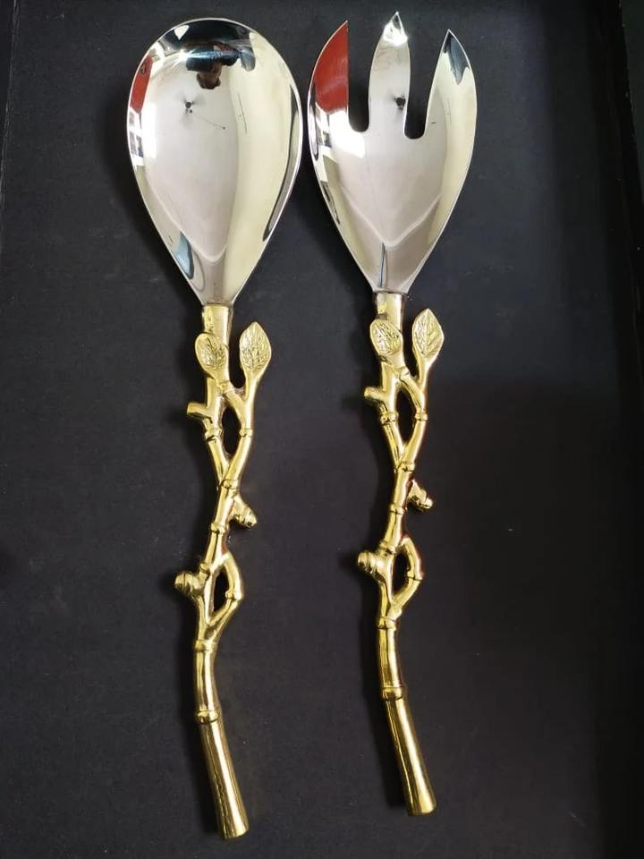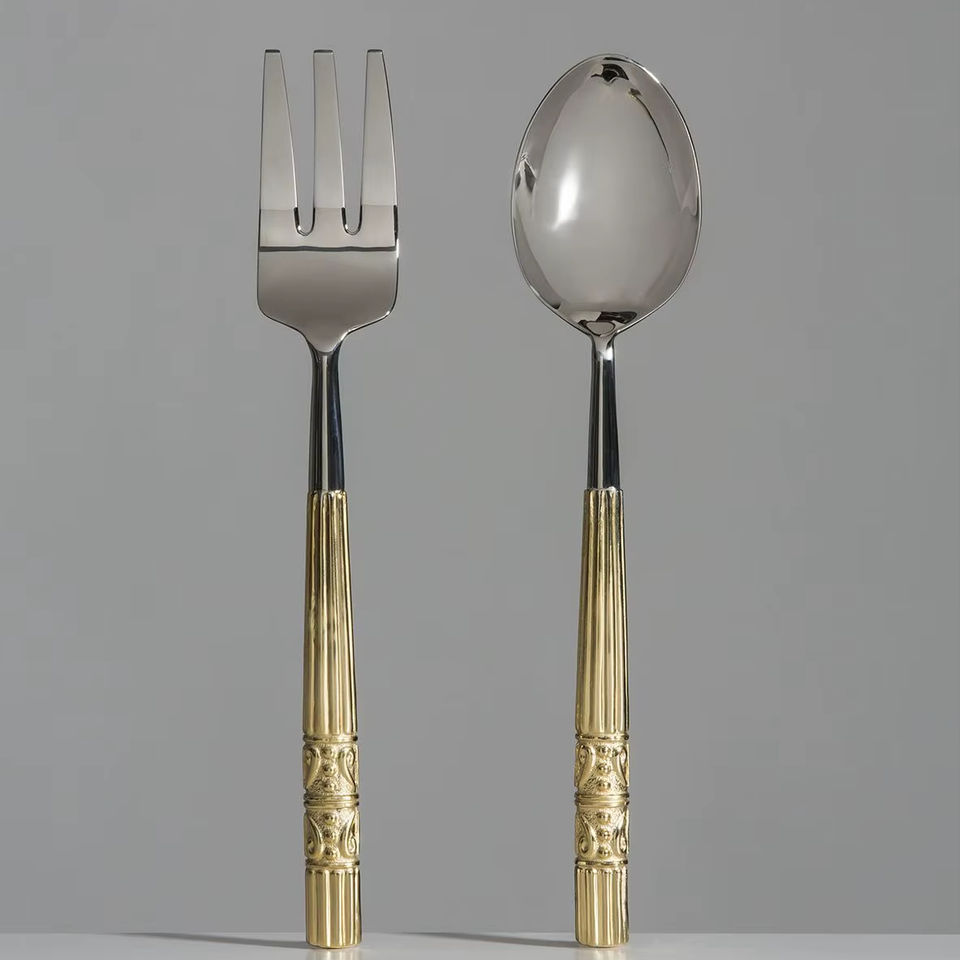ชุดเซ็ตสลัดโลหะหรูหราด้ามจับทองเหลืองเครื่องใช้บนโต๊ะอาหารทันสมัยของขวัญ