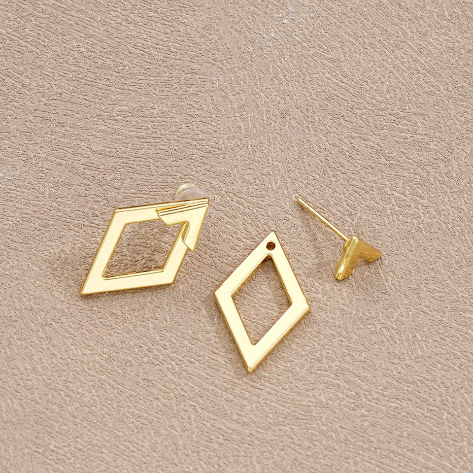 ต่างหูหมุดกลวงรูปทรงเรขาคณิตแบบเรียบง่ายทำจากโลหะหรูหราต่างหูใส่ได้สองทาง