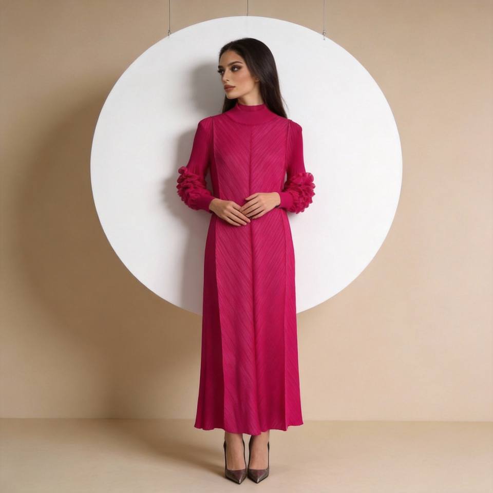 ชุดอาบายะพิมพ์ลายจีบผ้าโพลีเอสเตอร์สุดหรูสำหรับผู้หญิงมุสลิม สไตล์ตะวันออกกลาง ขายส่งแบบพรีเมียม