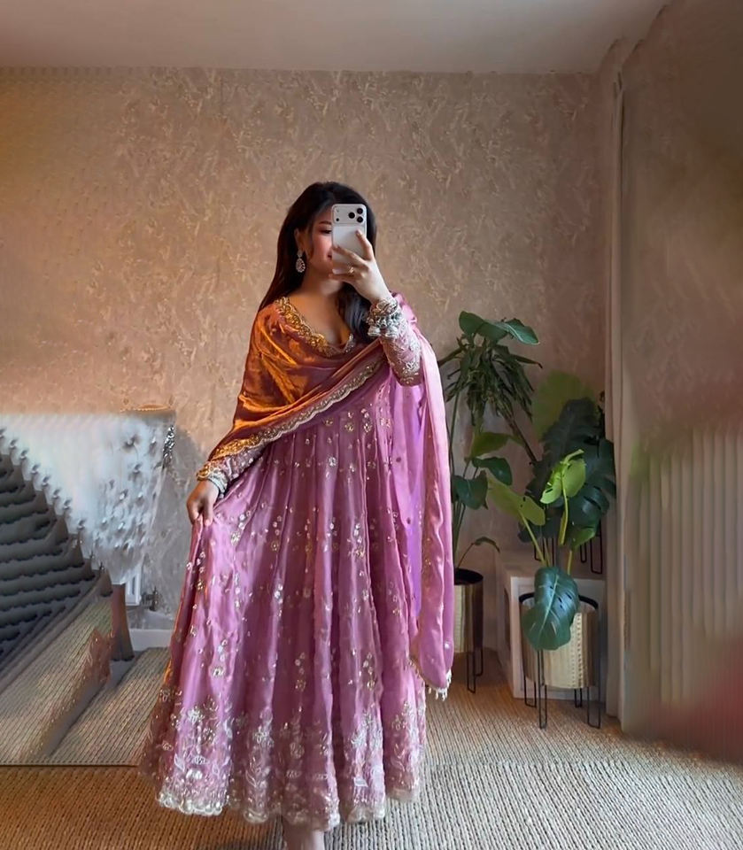 Embroidery Threds & Sequins Work: The intricate embroidery and sequins work add a touch of elegance and sophistication, making it suitable for parties and special occasions.