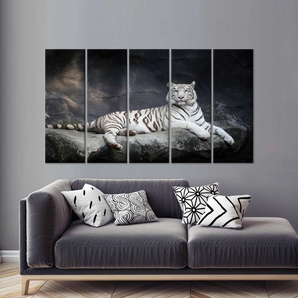 งานศิลปะบนผ้าใบลายสัตว์ทันสมัยหรูหรา - ลายพิมพ์สำเร็จรูป ชุดผ้าใบ 5 ชิ้น