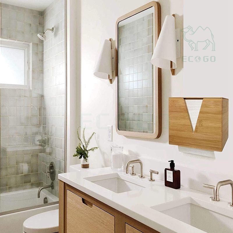 เคาน์เตอร์ที่ใส่กระดาษทิชชู่ทำจากไม้ไผ่ดีไซน์ทันสมัยหรูหราหรือติดผนัง