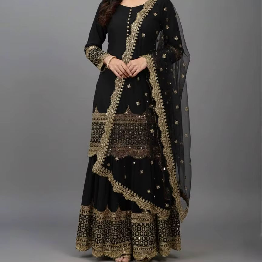 ชุดงานเลี้ยงสามชิ้นแบบอนาร์กาลี ดีไซน์หรูหราทันสมัย ปักลายประณีต
