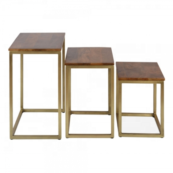โต๊ะข้างทำจากไม้โลหะแบบยืดได้พร้อมสำเนียงทองสำหรับเฟอร์นิเจอร์บ้านห้องนั่งเล่นห้องนอนโต๊ะกาแฟ