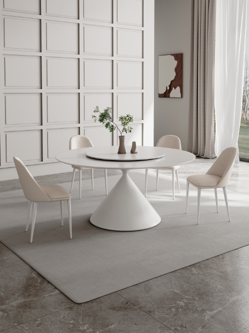ชุดรับประทานอาหารหินอ่อนที่ทันสมัยสง่างาม: โต๊ะหมุนทรงกลมพร้อมเก้าอี้ที่เข้ากันสำหรับการใช้ชีวิตที่หรูหราทันสมัยน้ำหนักเบา