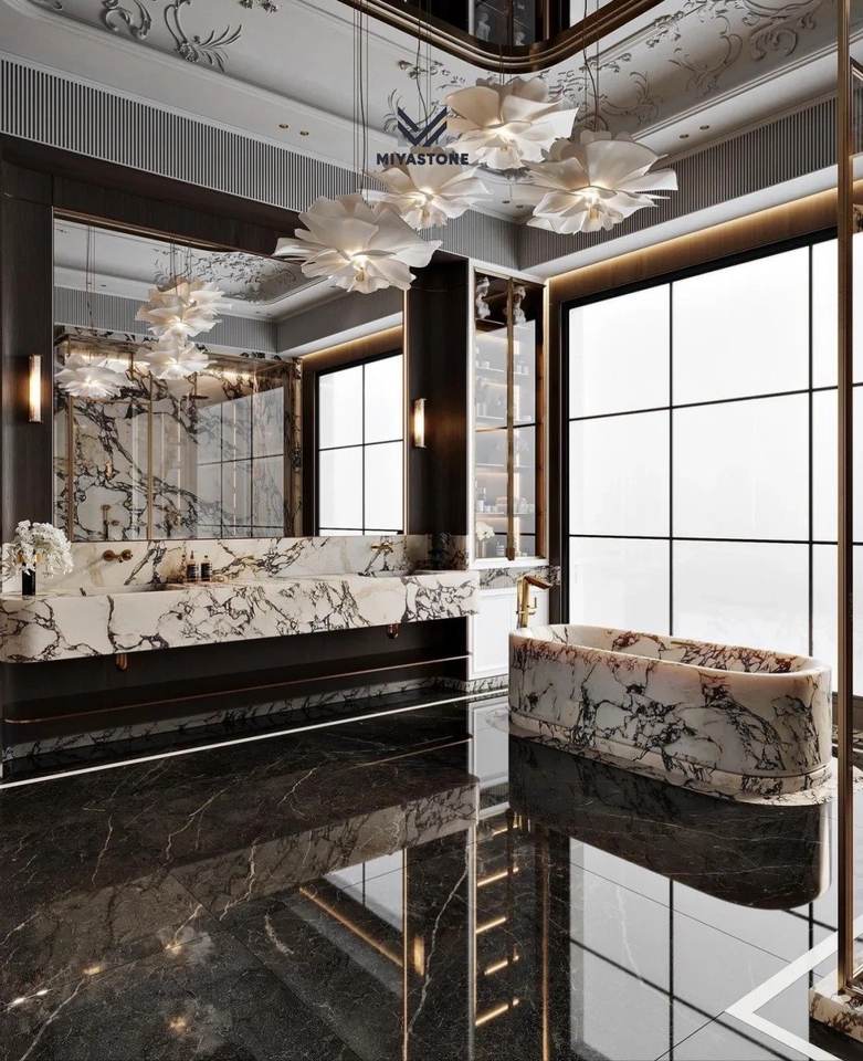 แผ่นหินอ่อนธรรมชาติทันสมัยหรูหราสำหรับการออกแบบตกแต่งภายในวิลล่า ผนัง ผนังห้องครัว ท็อปโต๊ะ พื้นตกแต่ง เป็นมิตรกับสิ่งแวดล้อม