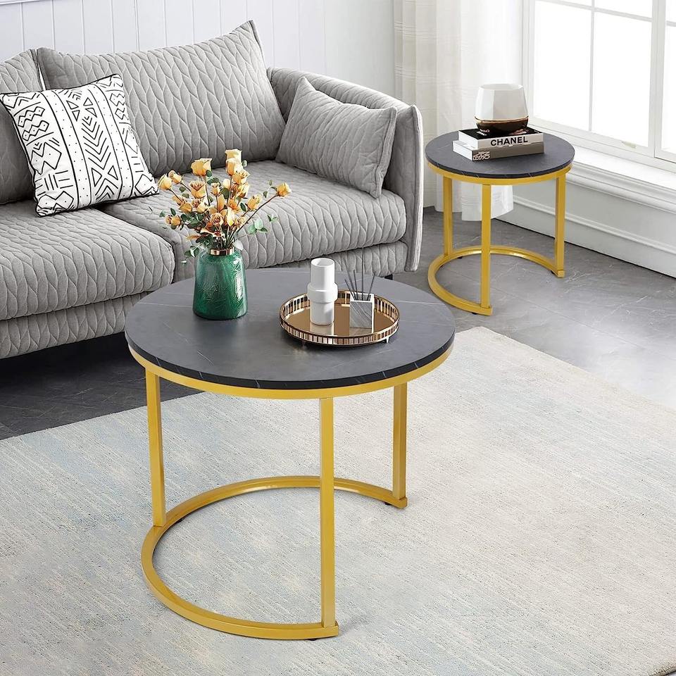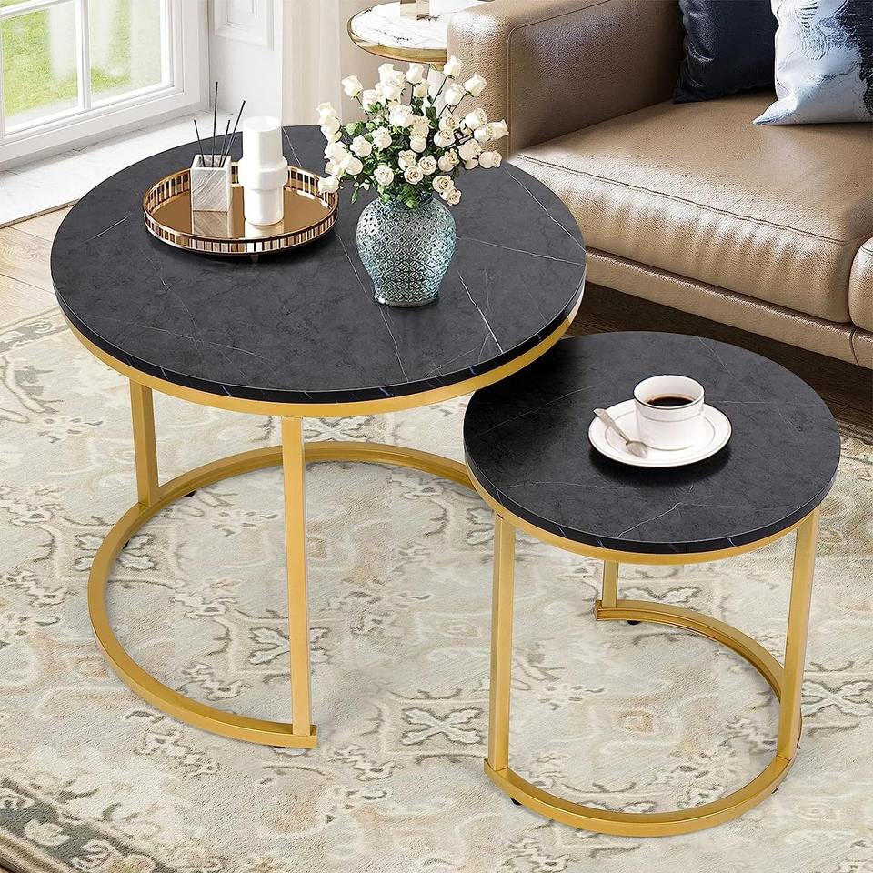 โต๊ะวางของแบบซ้อนได้ ดีไซน์หรูหราทันสมัยอเนกประสงค์ โครงโลหะ ท็อปโต๊ะโลหะ เหมาะสำหรับห้องนั่งเล่นในอพาร์ทเมนต์ ประกอบง่าย
