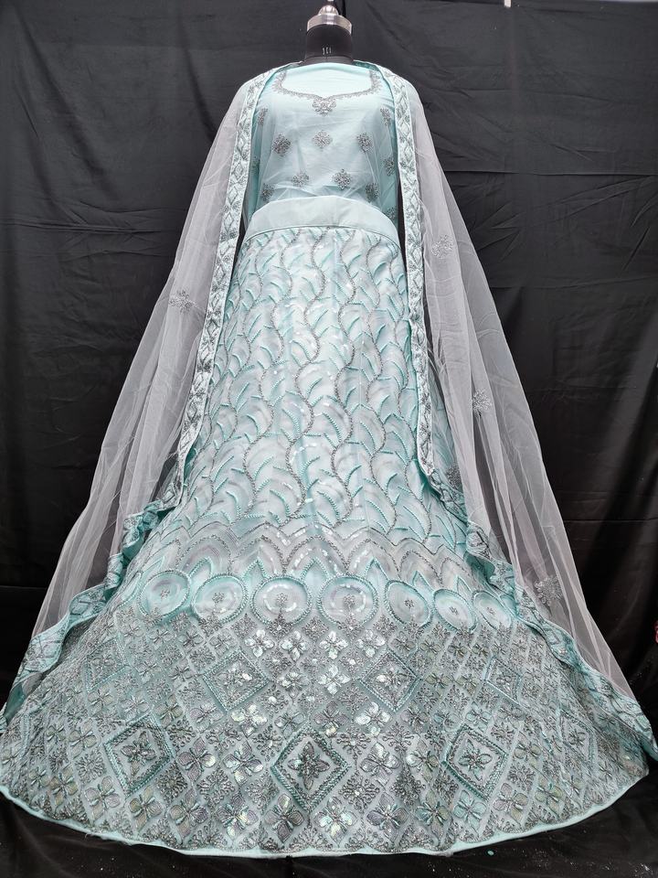 Dupta:LONG SOF NET 4 SIDE BORDER BUTTI WORK