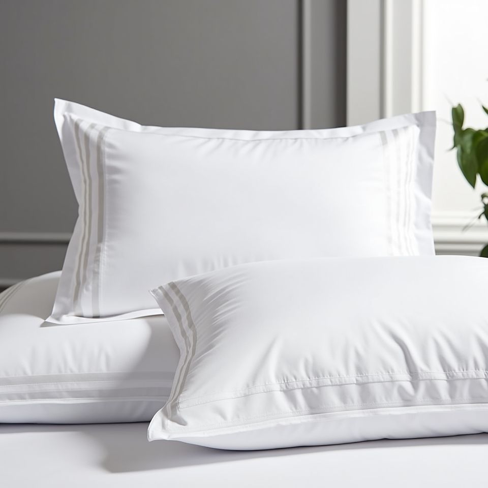 ปลอกหมอนผ้าซาตินลายทางสไตล์โมเดิร์นหรูหราขนาด55X85ซม. ผ้าผสมโพลีคอตตอนพร้อมชายผ้าทอแบบฝรั่งเศส