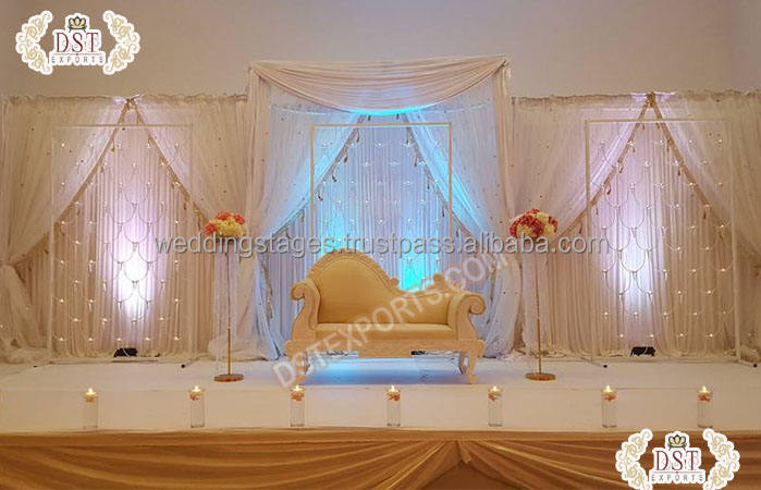ฉากหลังงานแต่งงานสไตล์เอเชียใต้ที่ทันสมัยและหรูหรา ตกแต่งผนังด้วยเทียนโลหะ สำหรับงานปาร์ตี้ งานแต่งงาน งานอีเว้นท์ในมิสซูรี มิสซิสซิปปี