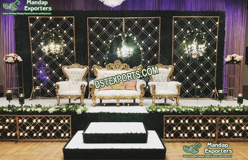 ฉากหลังงานแต่งงานทันสมัยหรูหรา ประดับด้วยเทียนระยิบระยับ ดีไซน์ผนังวิบวับ ปรับแต่งสีและขนาดได้ โครงสร้างโลหะแบบพกพา ผลิตในแคนาดา