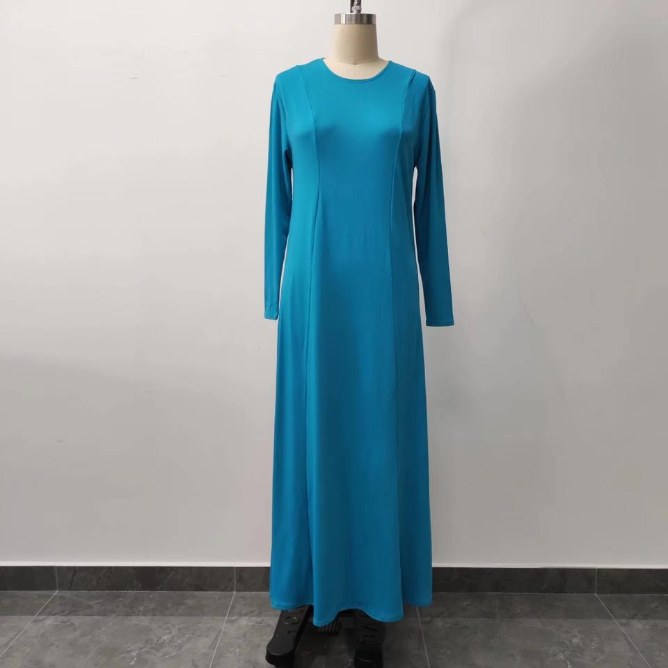 เดรสแม็กซี่อาบายาแขนยาวสไตล์เรียบง่ายหรูหราสำหรับผู้หญิงมุสลิมดีไซน์คอกลมใส่สบาย