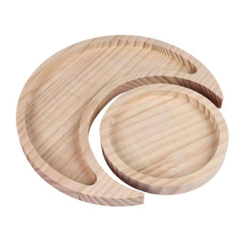 ถาดเสิร์ฟไม้รูปทรงดวงจันทร์หรูหราถาดเสิร์ฟไม้เป็นมิตรกับสิ่งแวดล้อมดีไซน์เป็นเอกลักษณ์สำหรับตกแต่งจานผลไม้ขนมอาหารว่างโต๊ะอาหาร
