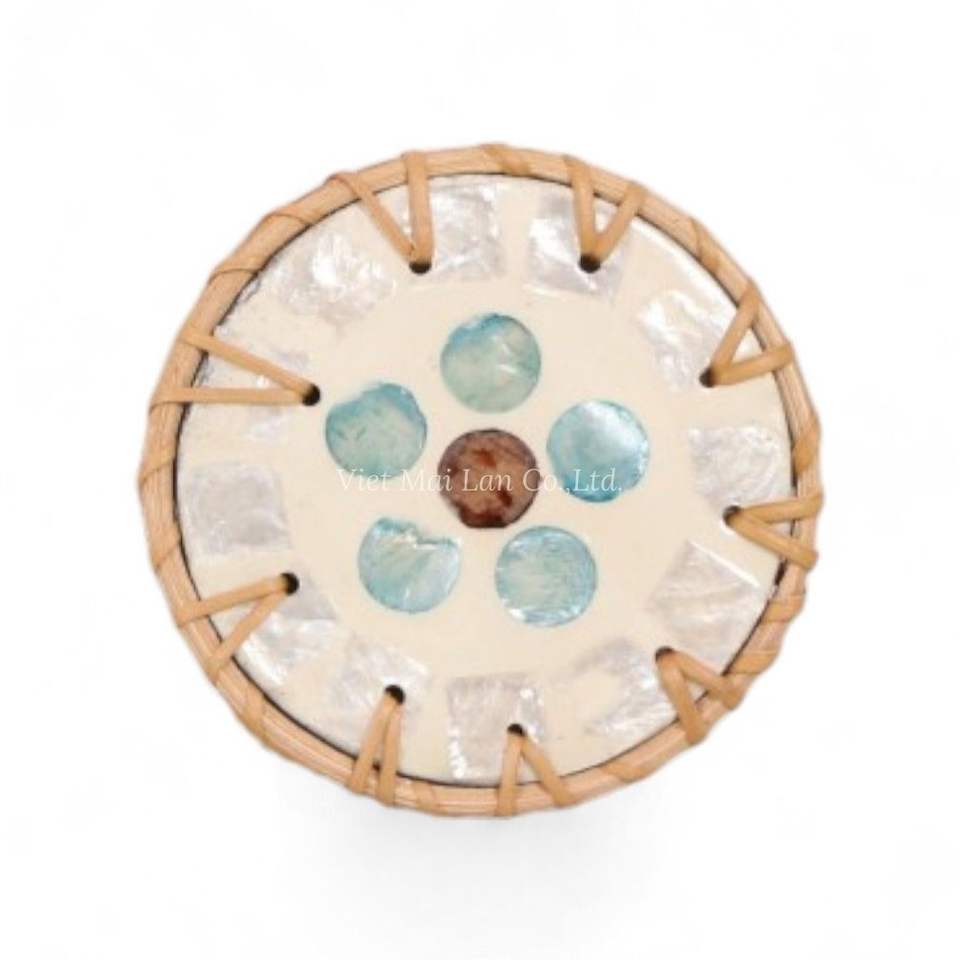 แผ่นรองแก้วมุกหรูหราผสมผสานขอบหวายสานด้วยมือเพื่อปกป้องและตกแต่งโต๊ะอาหาร