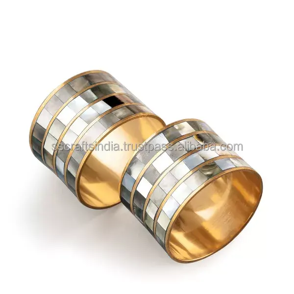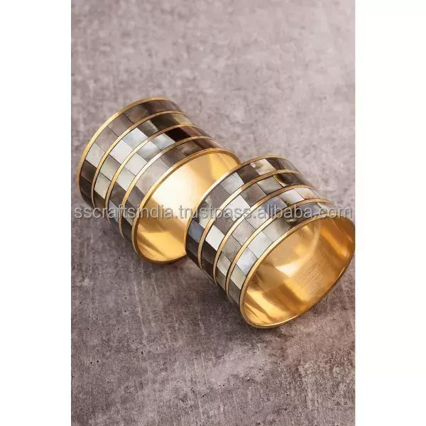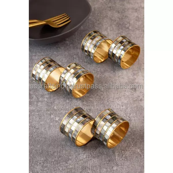 แหวนรองผ้าเช็ดปากทองเหลืองประดับมุกหรูหรา สีดำ/ทอง มีสินค้าในสต็อก สำหรับตกแต่งโต๊ะอาหารงานแต่งงาน งานเลี้ยงที่บ้าน ผลิตในอินเดีย