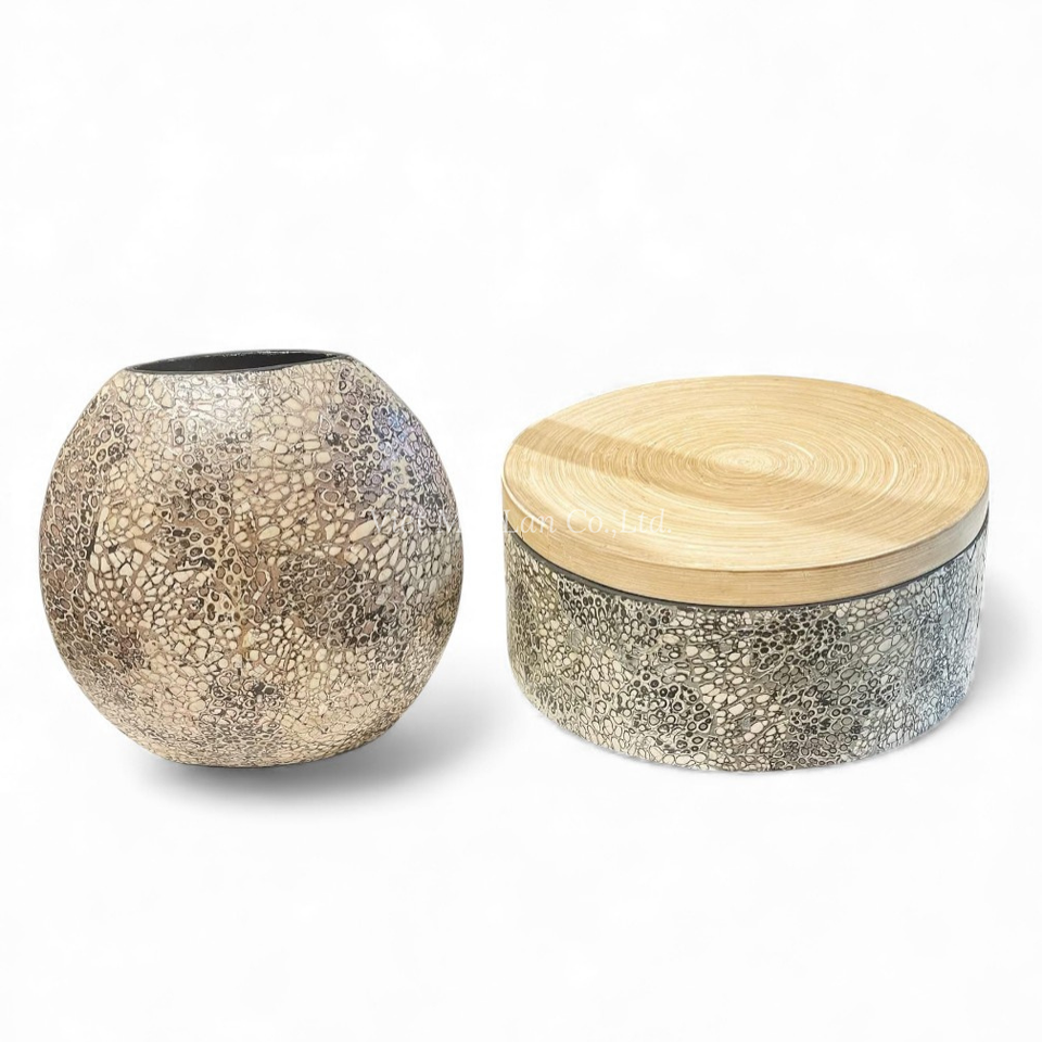 แจกันเปลือกหอยมุกสุดหรู พร้อมกล่องตกแต่งเข้าชุด งานฝีมือฝังเปลือกหอย สำหรับตกแต่งบ้านและโรงแรม จากเวียดนาม