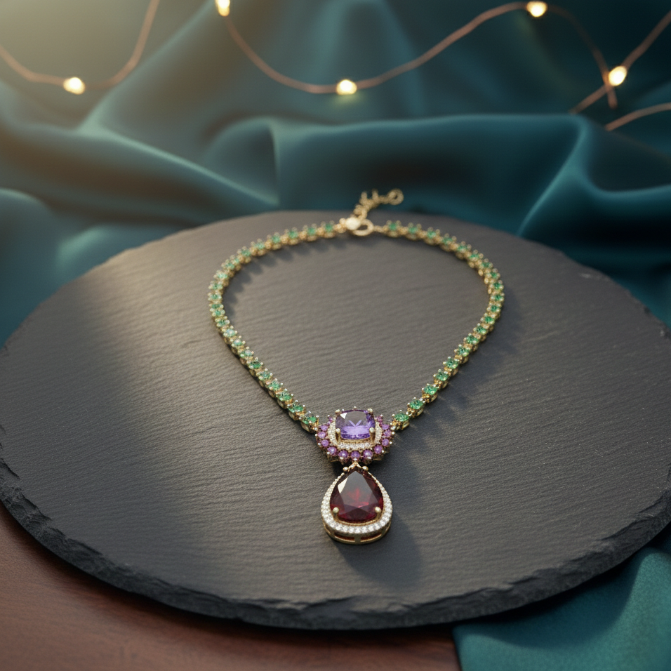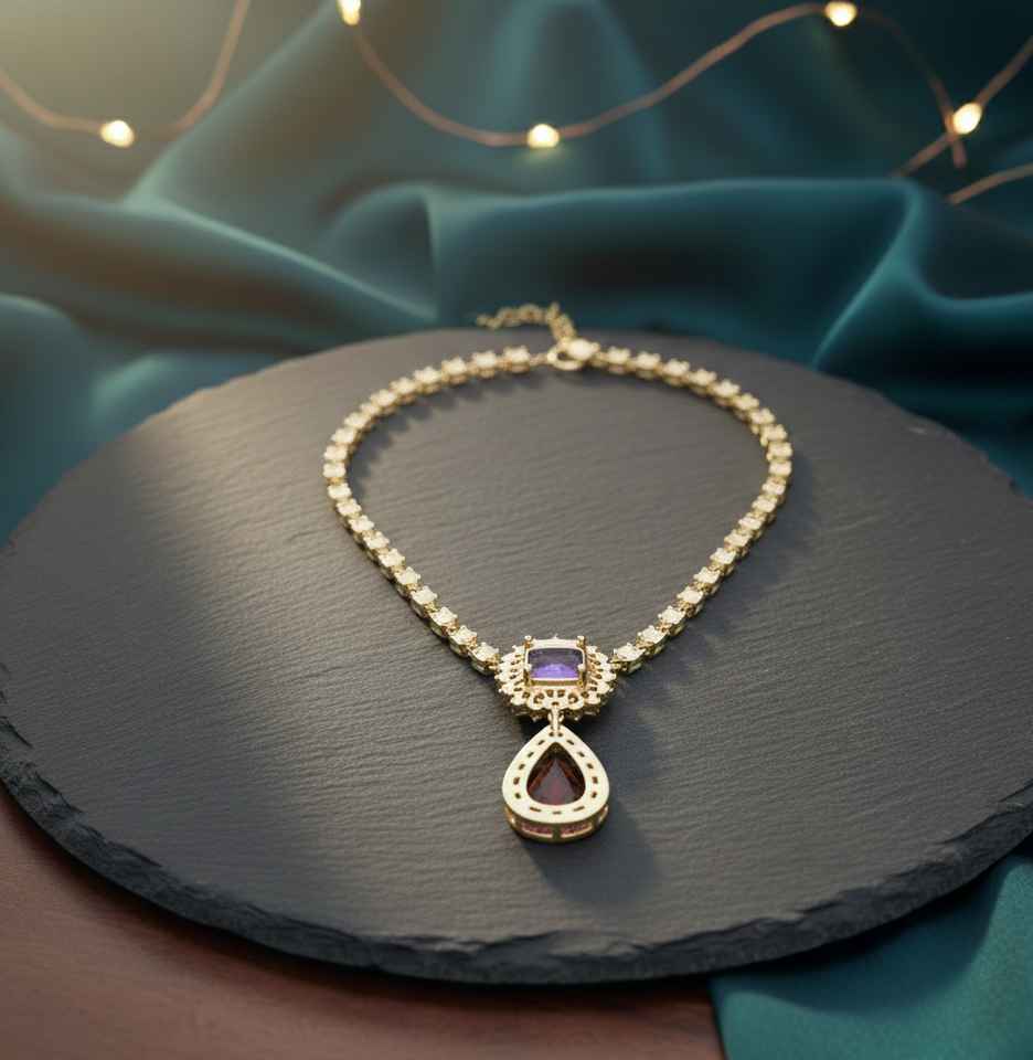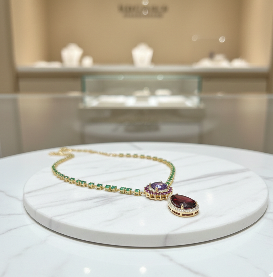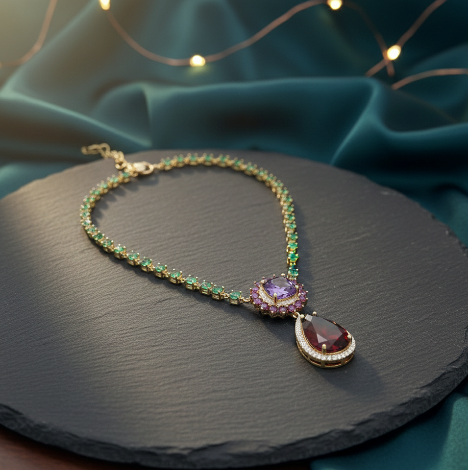 สร้อยคอประดับพลอยหลากสี ดีไซน์หรูหรา ประดับโกเมน บลูอเมทิสต์ เกรนท์ ชุบทอง 18K เงินแท้ 925 เหมาะสำหรับงานปาร์ตี้
