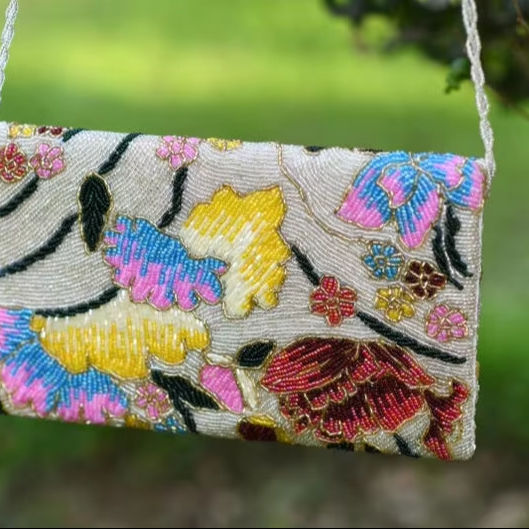 Elegant Multicolor party Bag Handmade DoubleSided Beaded Handbag Ideal Purse for Brides & BridesmaidsBohoThemed