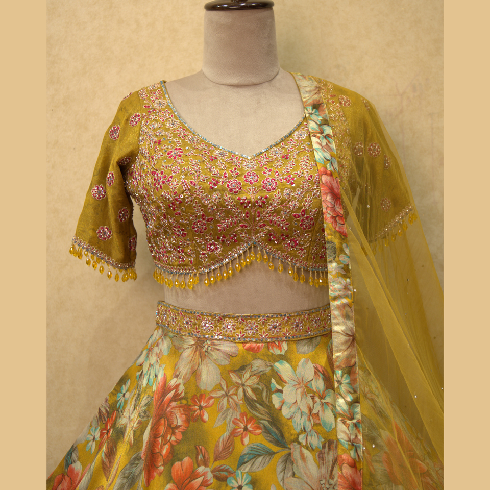 Lehenga choli ลายมัสตาร์ดหรูหราพร้อมการปักลาย zari และหลายลำดับที่สมบูรณ์แบบสำหรับทุกฟังก์ชั่นในราคาขายส่ง