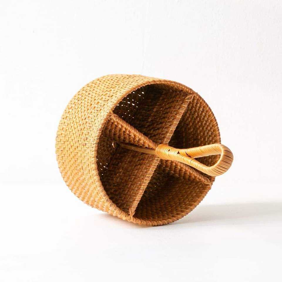 ตะกร้าหวายทรงกลมพร้อมที่จับสำหรับใส่เสื้อผ้าในห้องครัวของเล่นซักรีดเสื้อผ้าขายส่ง