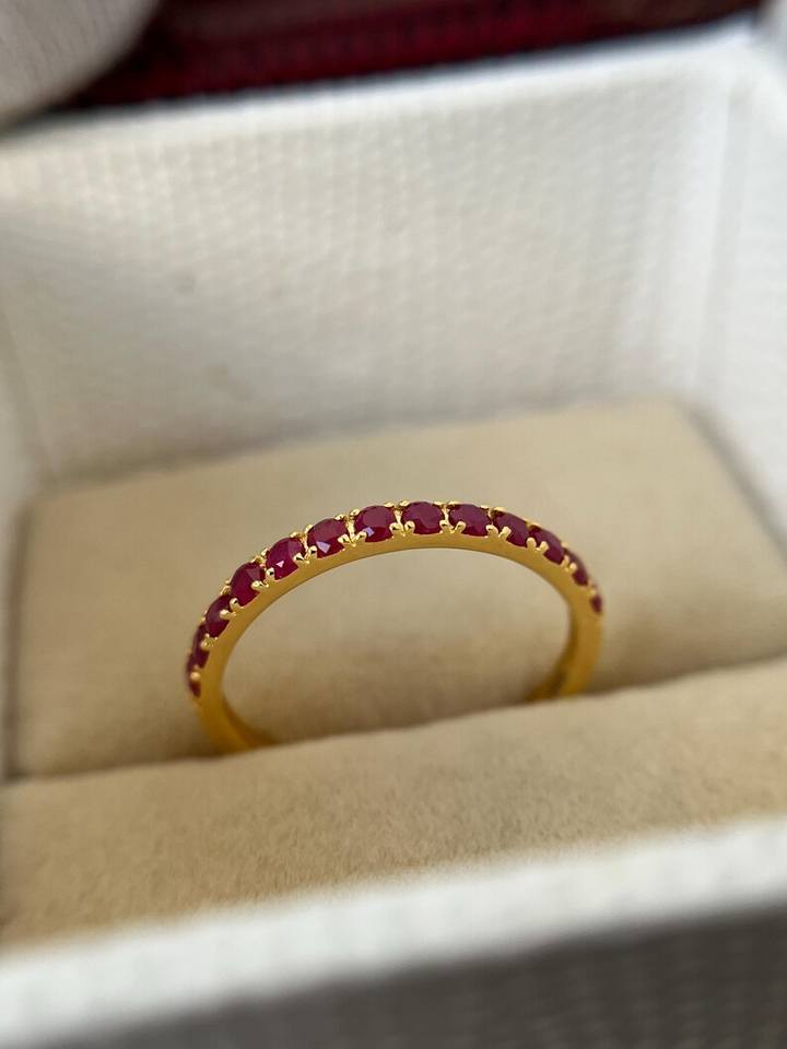 แหวนทับทิมธรรมชาติทรงกลม ดีไซน์หรูหรา เงินแท้ 925 ชุบทอง 14K แบบครึ่งวงกลม สำหรับขอแต่งงาน