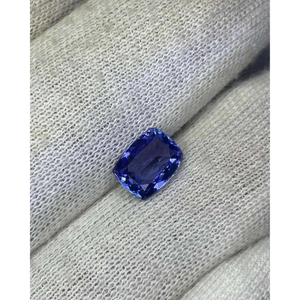 พลอยแทนซาไนต์ทรงคุชชั่นสีน้ำเงินธรรมชาติ สวยงาม เหมาะสำหรับการฝังทำเครื่องประดับชั้นดี มีจำหน่ายในราคาขายส่ง