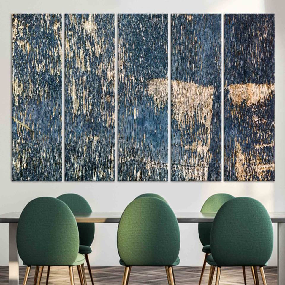 งานศิลปะพิมพ์ลายปูนปลาสเตอร์สีน้ำเงินกรมท่าแบบนามธรรมบนผ้าใบ ชุดผ้าใบ 5 ชิ้น