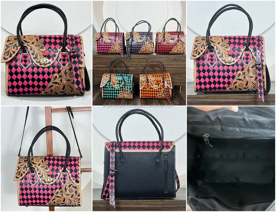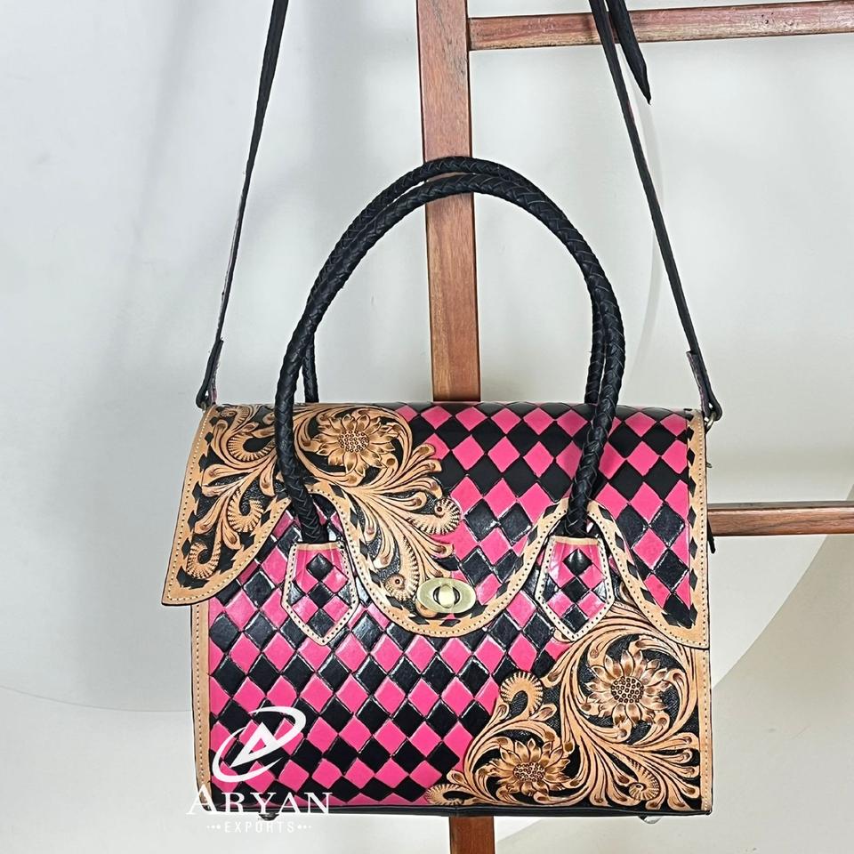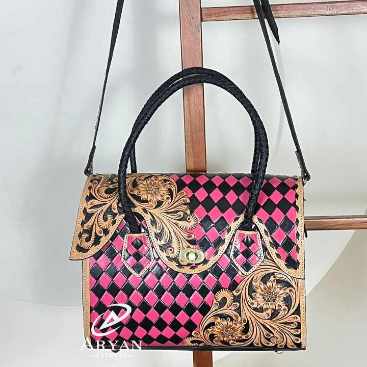 ชื่อสินค้า:กระเป๋าถือหนังลายตารางทำมือ