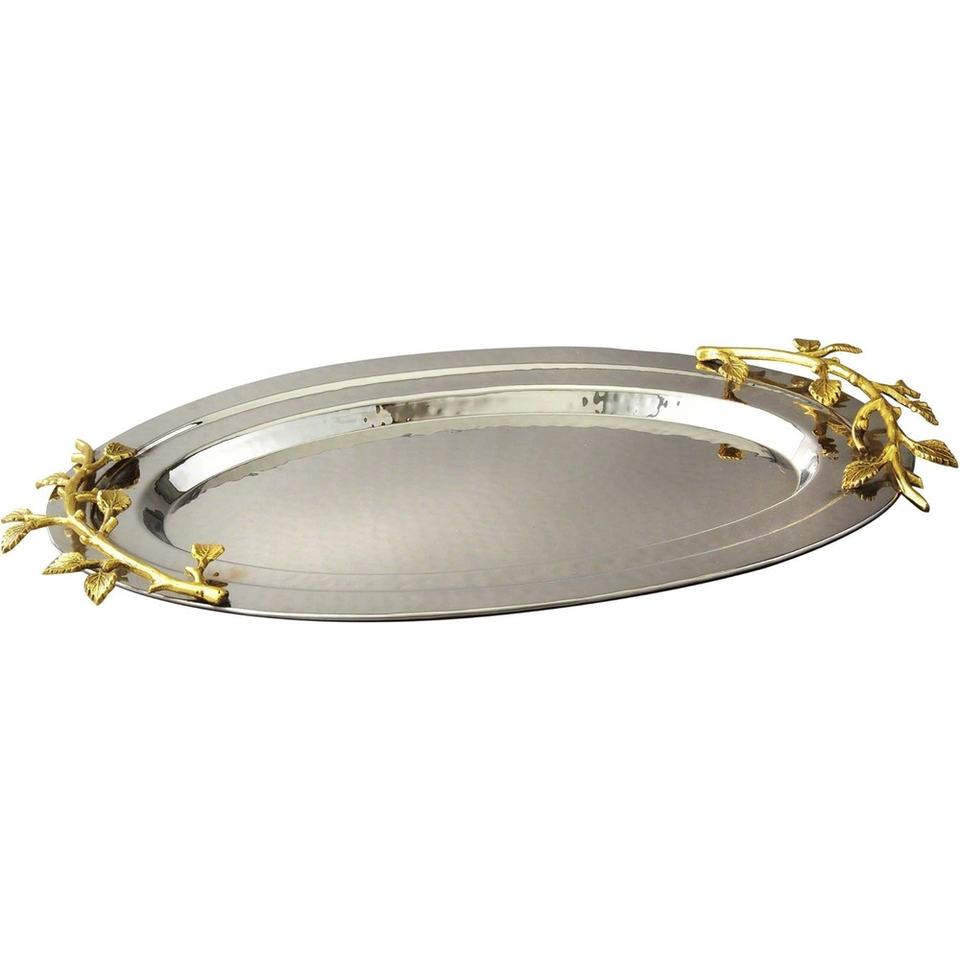 ถาดเสิร์ฟโลหะชุบนิกเกิลหรูหราทนทานสำหรับเสิร์ฟของว่างที่มีสไตล์ของตกแต่งบ้าน