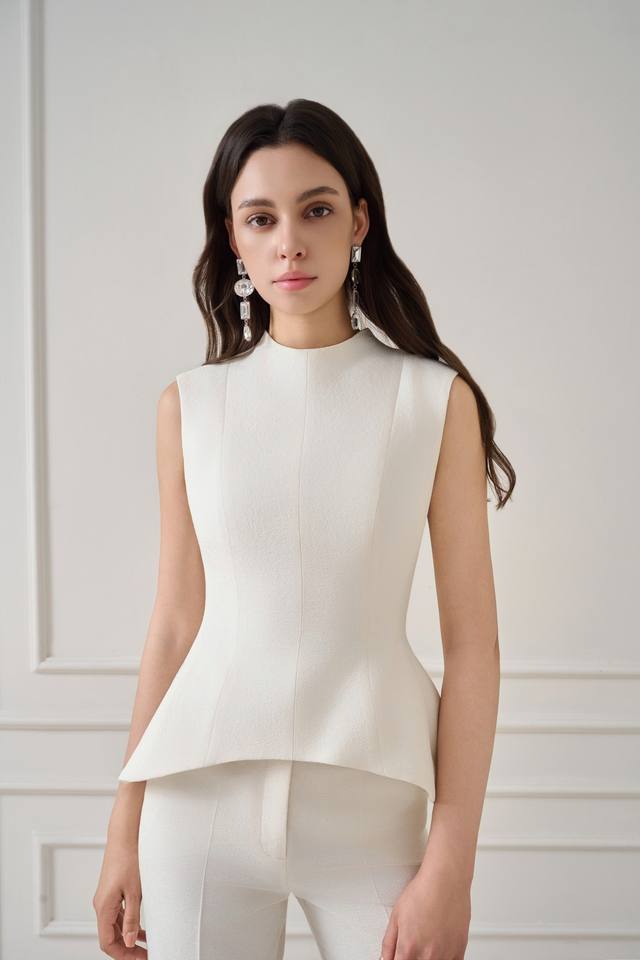 ชุดเสื้อเบลาส์และเสื้อแจ็คการ์ดแขนกุดสำหรับผู้หญิงชุดเสื้อผ้าสตรีเทรนด์ทรายหรูหรา