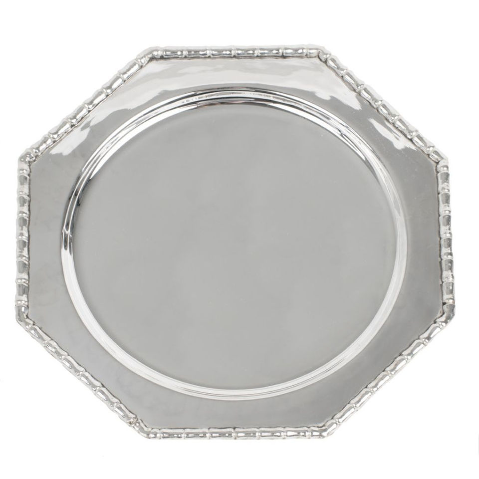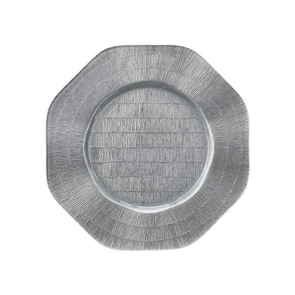 จานรองอาหารทรงแปดเหลี่ยมสีเงิน ดีไซน์หรูหรา ประดับด้วยกลิตเตอร์ เป็นมิตรกับสิ่งแวดล้อม เหมาะสำหรับงานแต่งงานและงานเลี้ยง ตกแต่งโต๊ะอาหาร