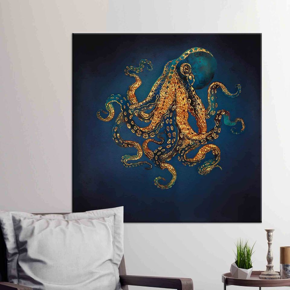 งานศิลปะบนผืนผ้าใบพิมพ์ลายปลาหมึกสุดหรูหรา ของขวัญส่วนตัว ผ้าใบห่อหุ้ม
