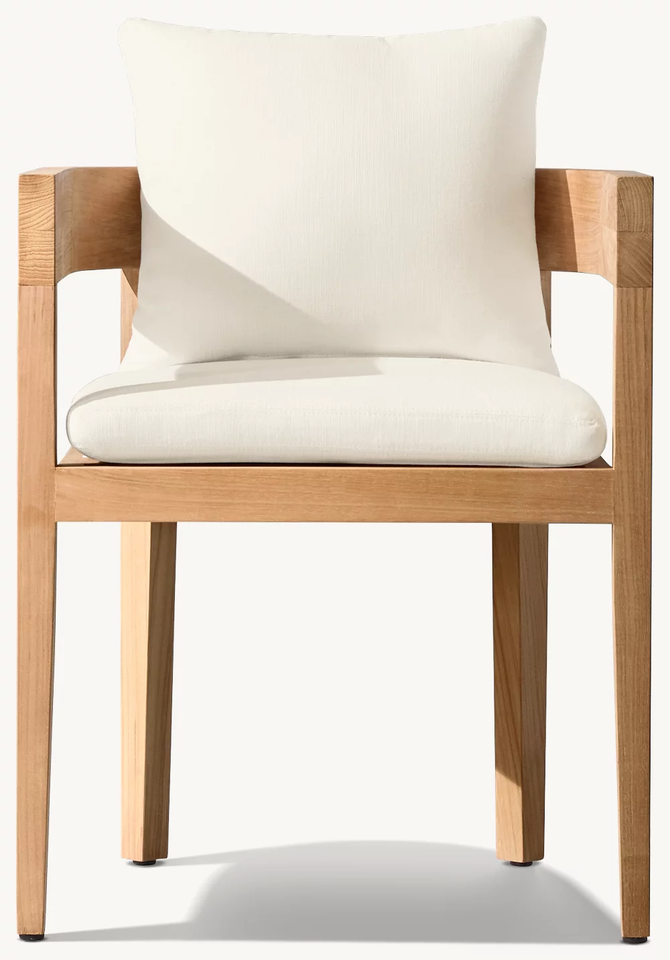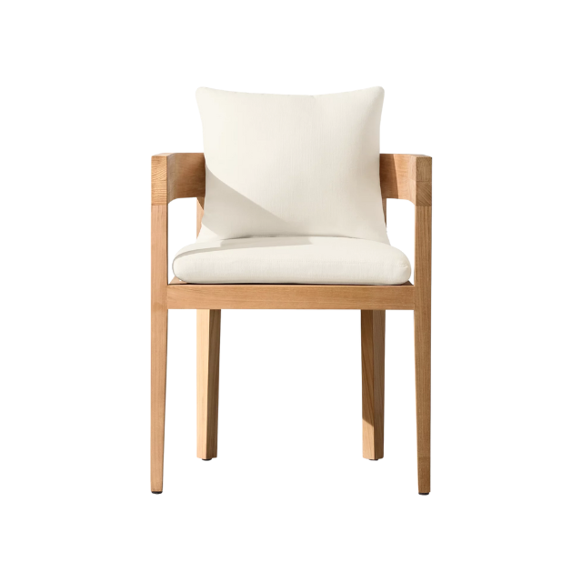 ชุดรับประทานอาหารกลางแจ้งที่หรูหราพร้อมไม้สักผุกร่อนและหมอนอิงสีขาว
