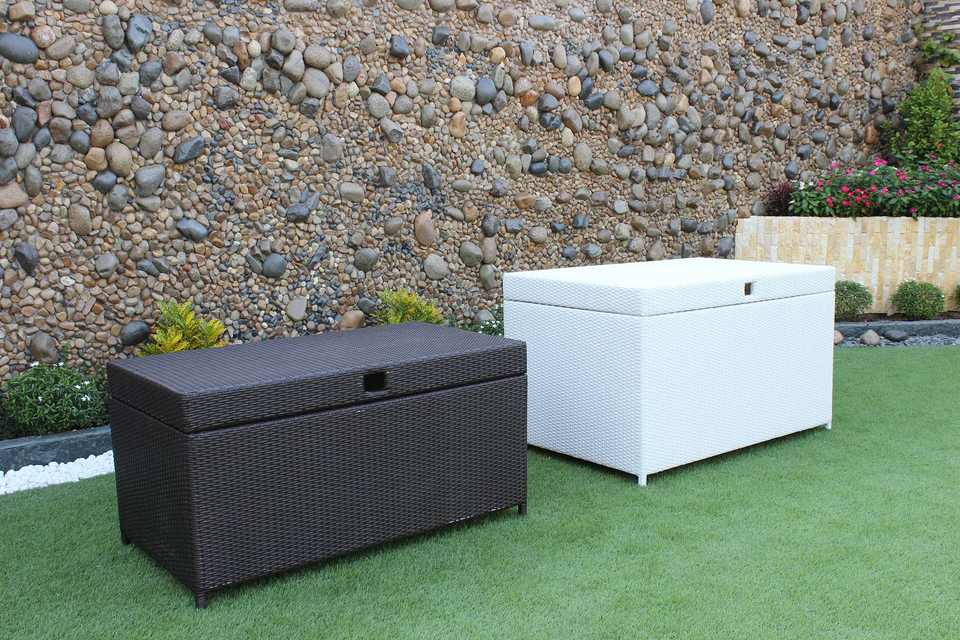กล่องเก็บของหวายเทียมกลางแจ้งสุดหรูสำหรับเฟอร์นิเจอร์ลานบ้าน